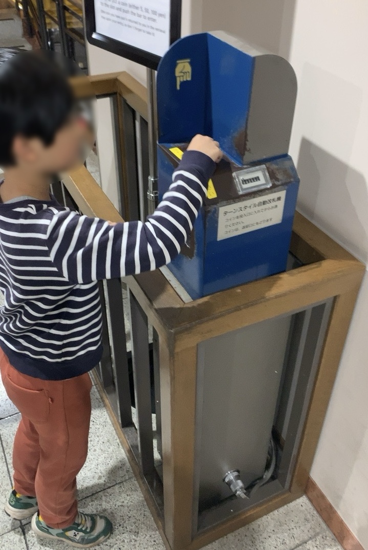 実際に5円~100円玉を入れると回せるという事で、息子にやらせてみた。(※入れた硬貨は返ってくる)