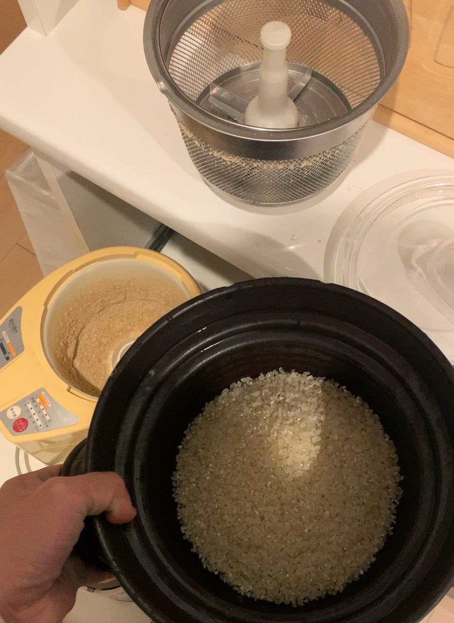 新米は玄米なので、わが家の虎の子の精米機で“7分搗き”に仕上げる。