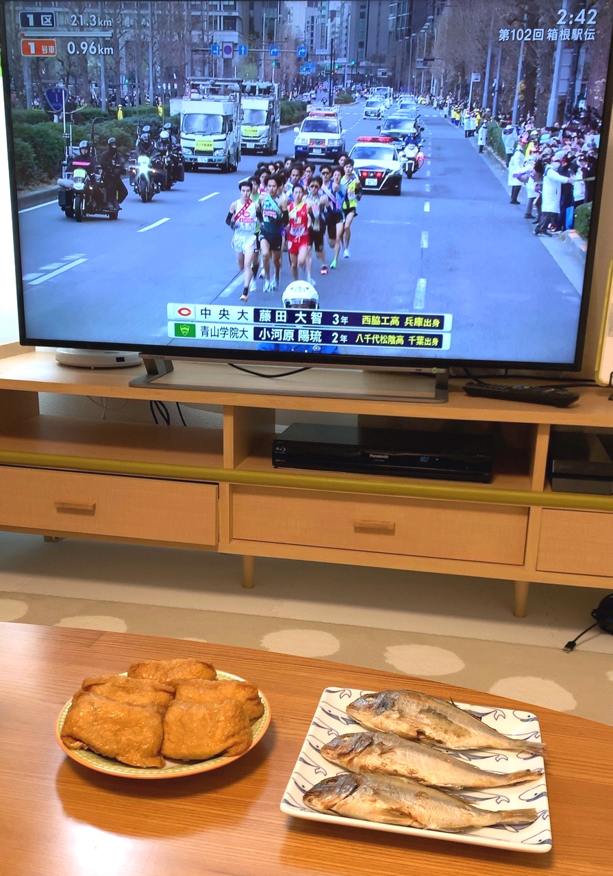 朝から稲荷寿司、ちだいを食べながらの「箱根駅伝」。