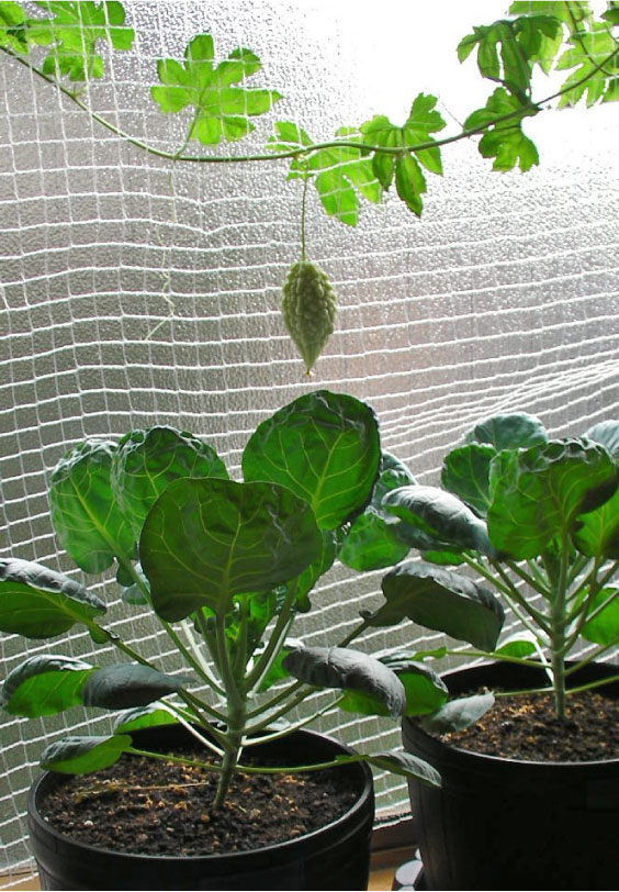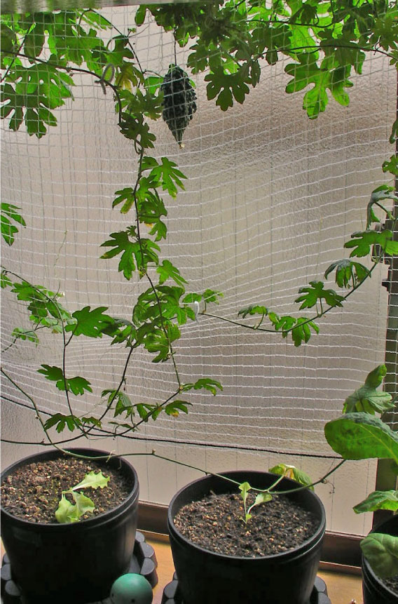 とりあえず、出かける前にキッチンの「緑ゴーヤ」と、寝室の「白ゴーヤ」に水を与えておく。