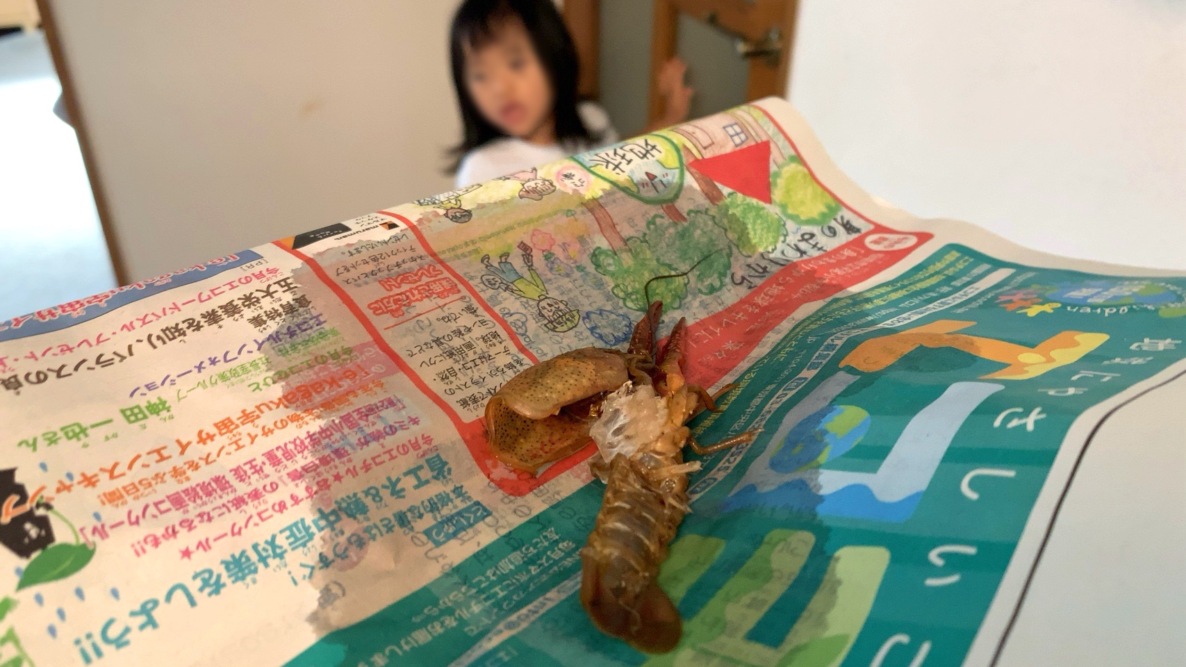 考え込んでいると、急に和室で遊んでいた下の息子2(3歳1ヶ月)がやって来て、脱皮殻を食べようとして、慌てふためく。