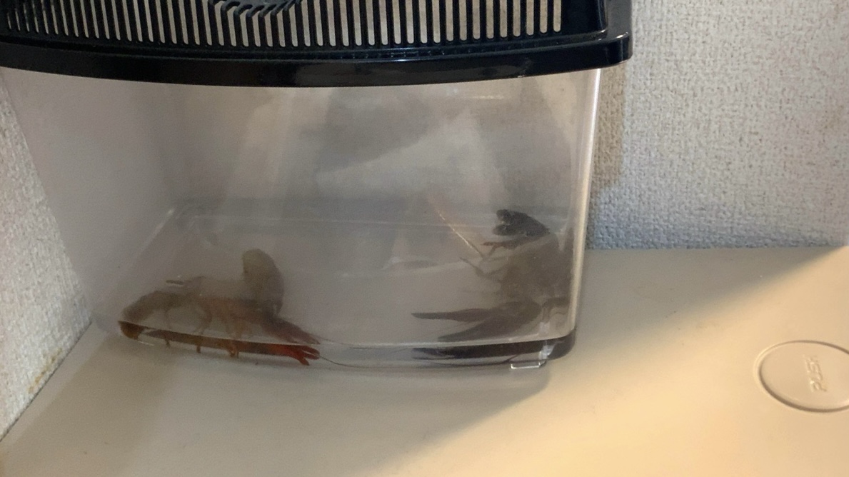 大急ぎで帰宅して水槽を見ると、そこにはザリガニの殻と、脱皮して動かなくなって横たわるザリガニがいた。