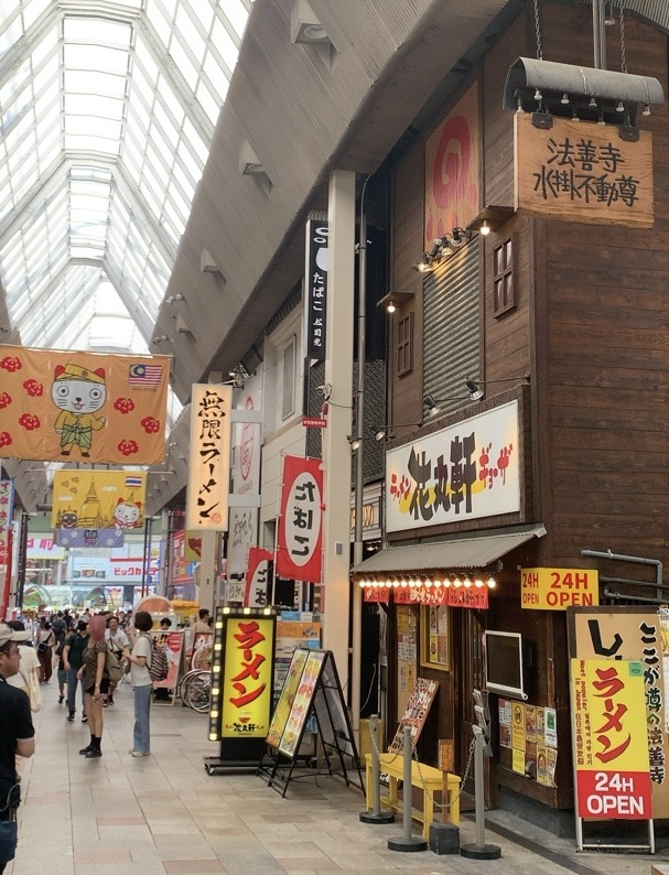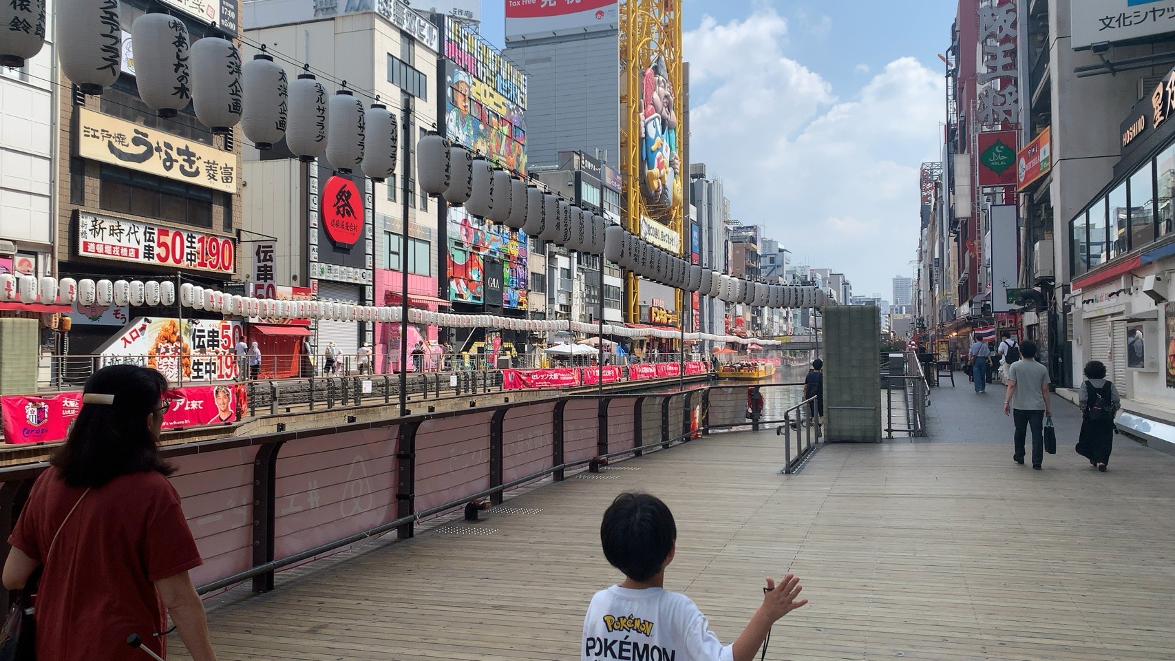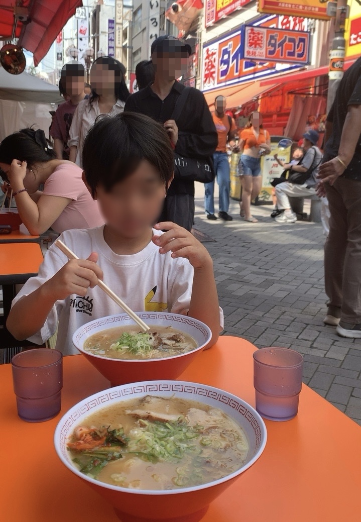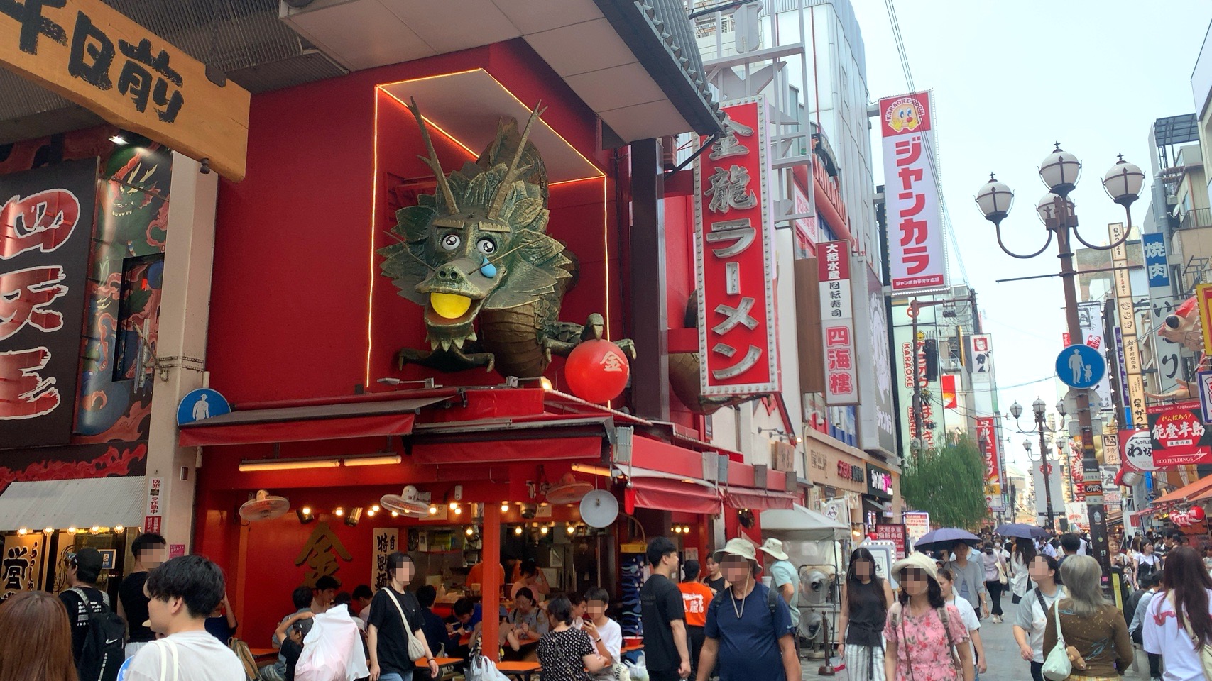 息子の手を引きつつ、この「花丸軒」のラーメンの骨付き豚バラ肉が圧力鍋でトロトロにされていて美味いんだよな……とか、右折先の法善寺横丁では高校の同級生が店やってたっけ……とか、至る所にたこ焼き屋があるな……とか、つらつら考え事を。