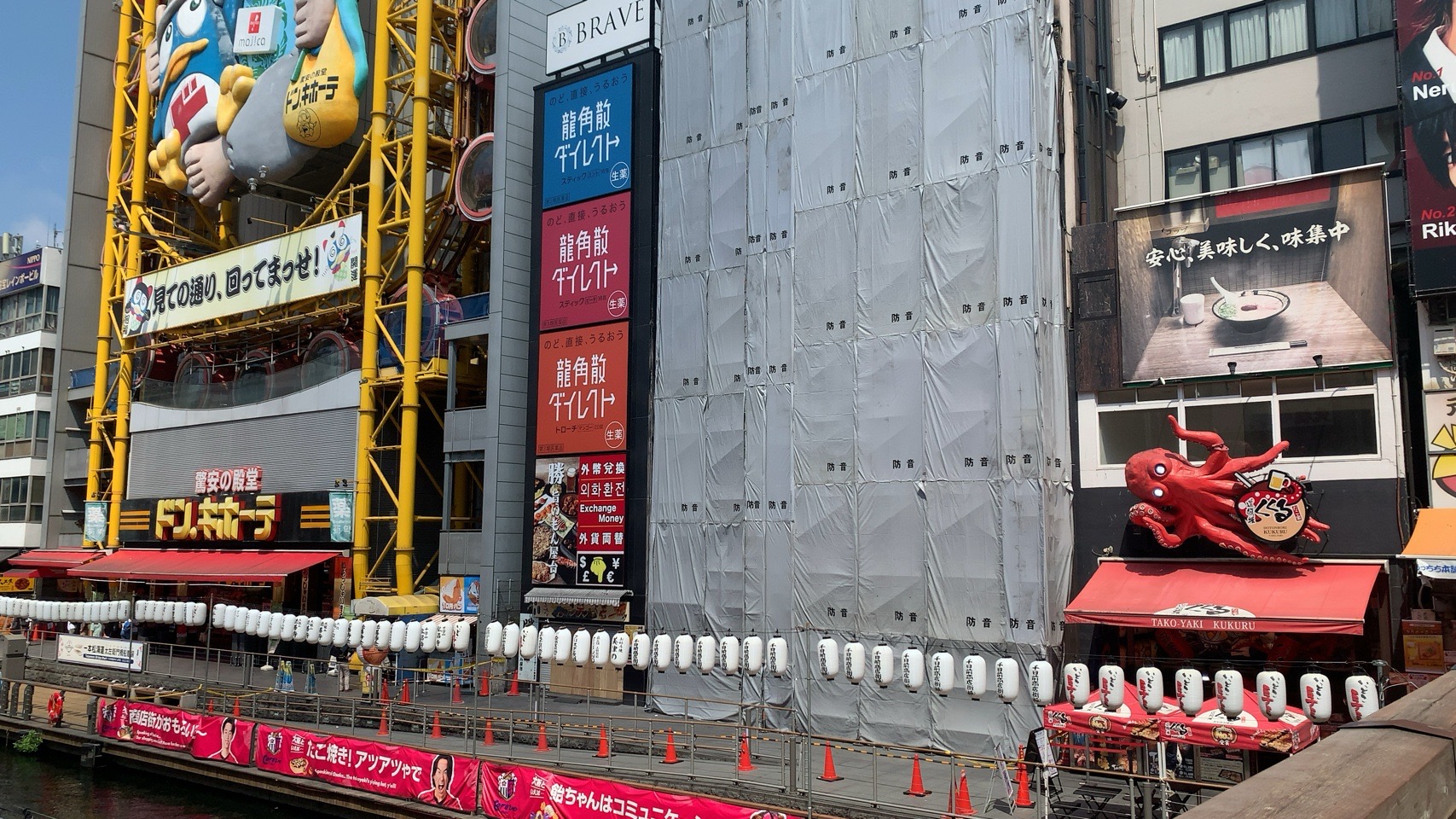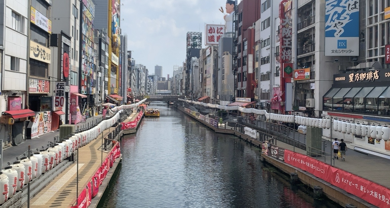 御堂筋線に乗り、「心斎橋駅」で降りて商店街を南下すると、「道頓堀」に到着!
