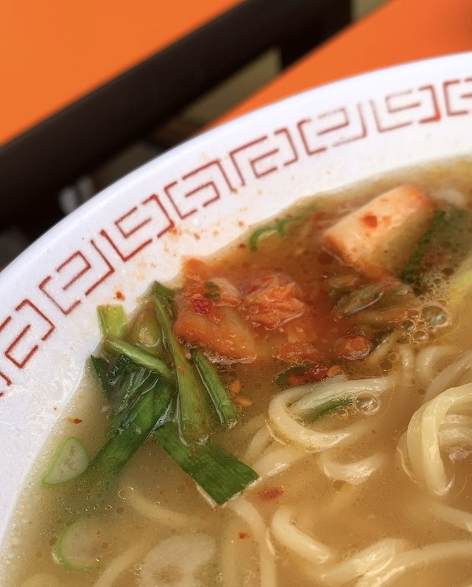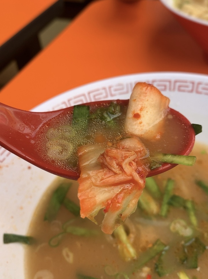 ラーメンを食べ進めるうちに、トッピングしておいた「ニラ」「キムチ」がスープに溶け出してきて、最後は一気にかき混ぜてピリ辛ラーメンにしていただくのが、毎度の楽しみだ。