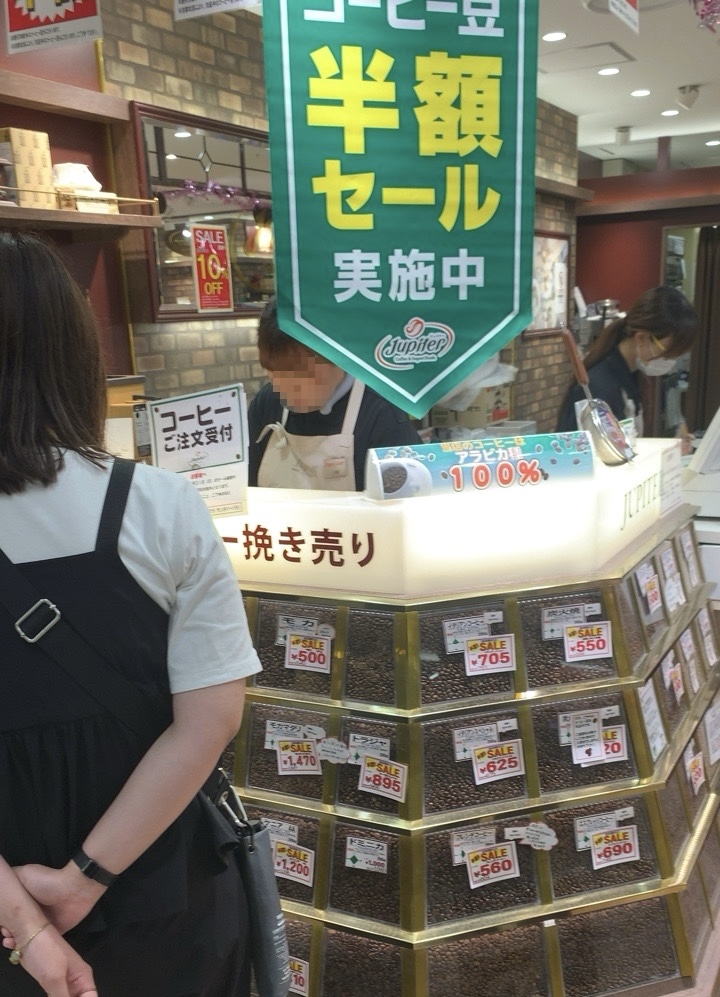 途中のコーヒー屋がコーヒー豆の“半額”セールをやっていて、フラフラ店内に吸い込まれてしまい、プレミアムブレンド(豆)を購入。