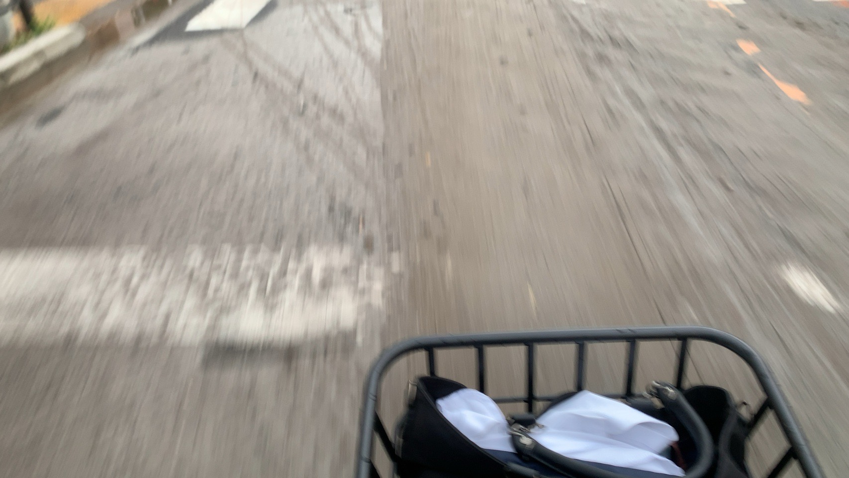自転車で海抜の低いエリアに進入したら、車道が真っ茶色!