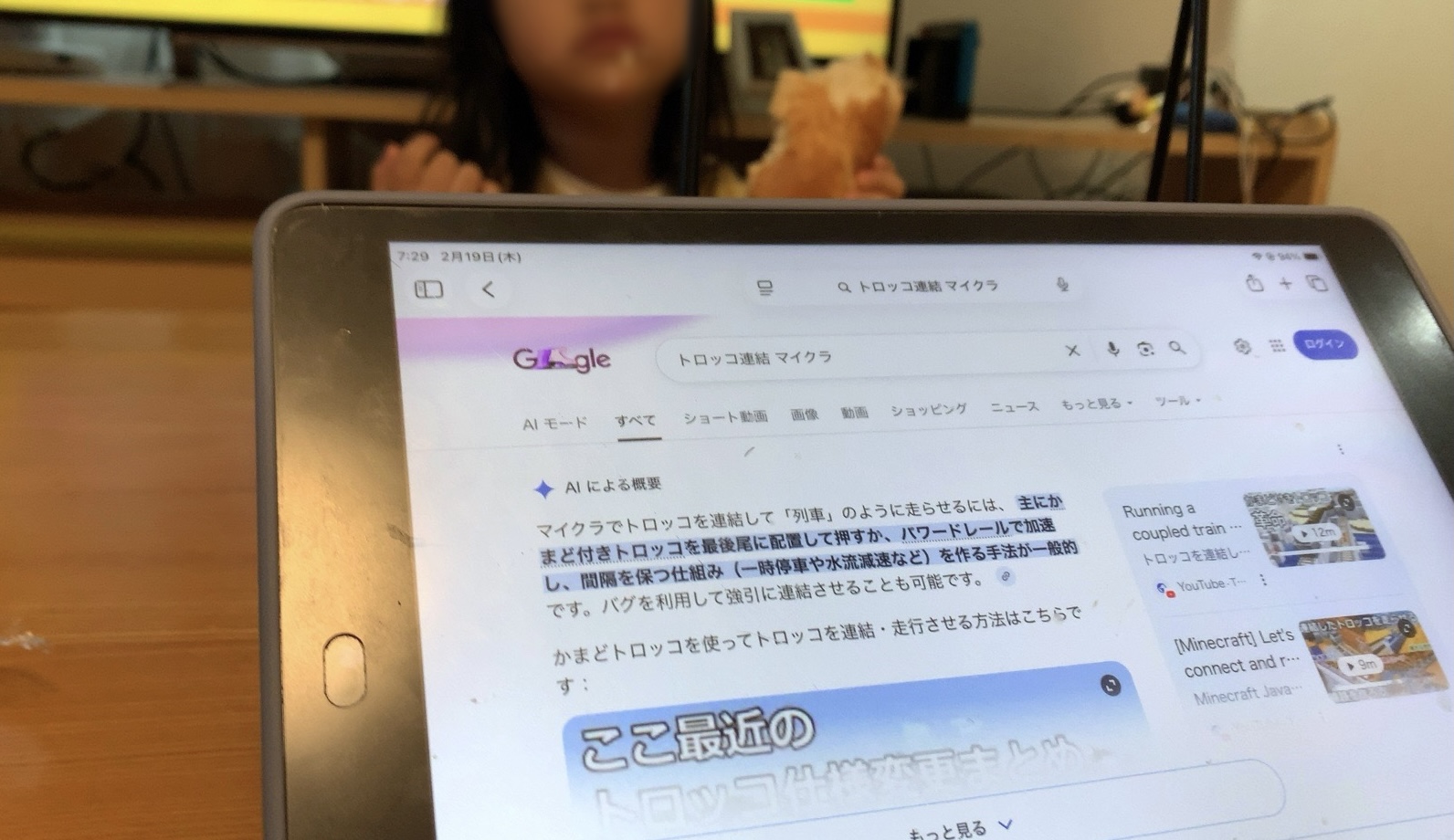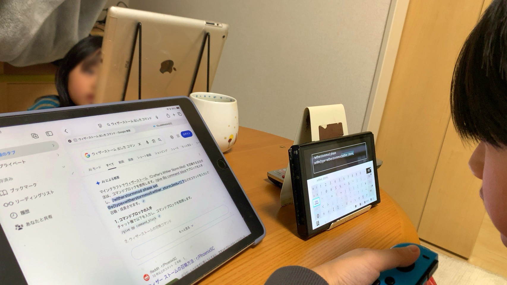 上の息子(8歳)も「マインクラフト」の通常では出現しない“コマンドブロック”を出す方法をタブレットで検索して解説動画に辿り着き……。
