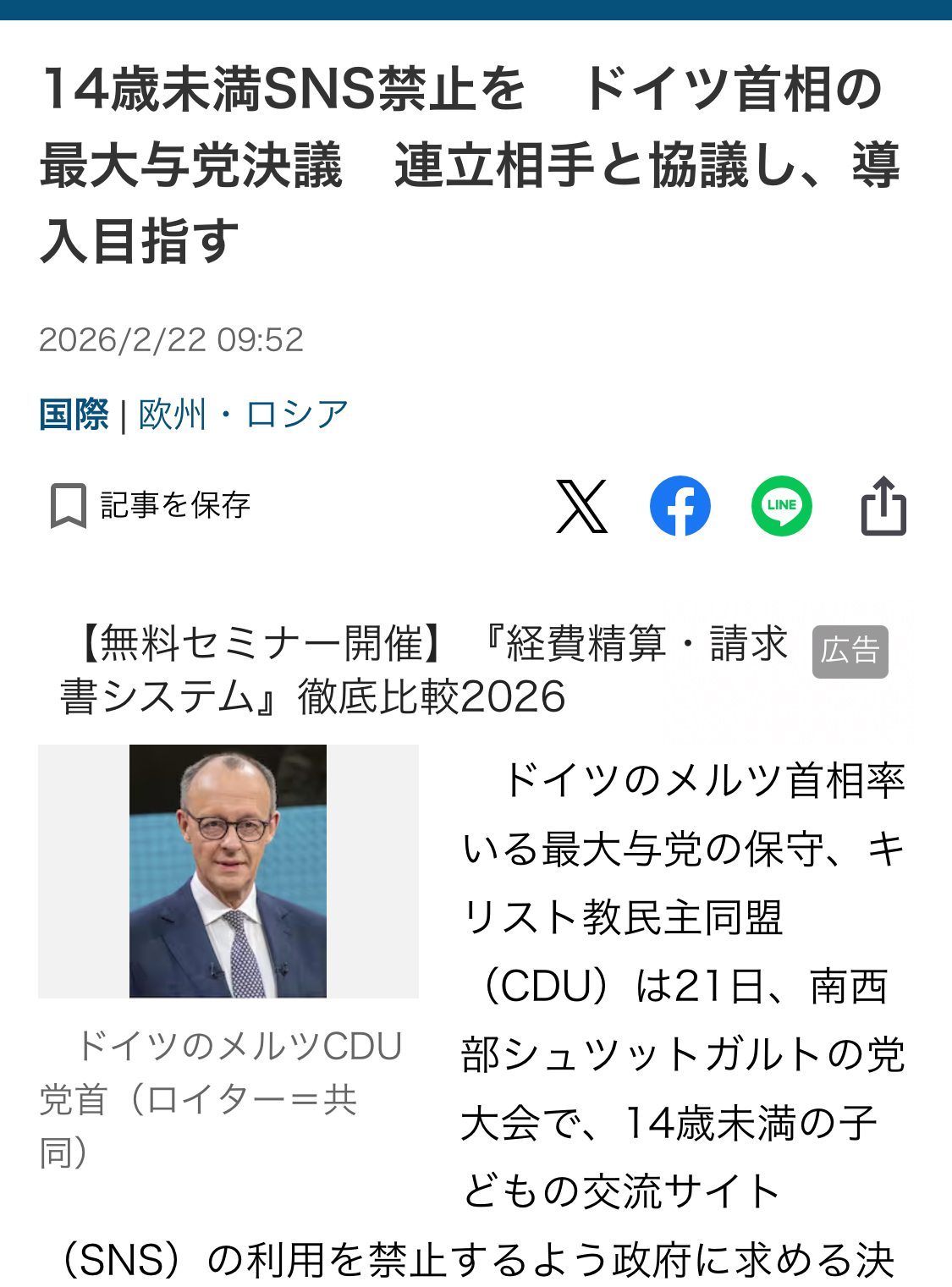わが家ではというより、世界中で子どものネットへのアクセス時間が社会問題となっていて、国によっては14歳未満はSNS禁止といった措置が取られる事態となっているようだ。