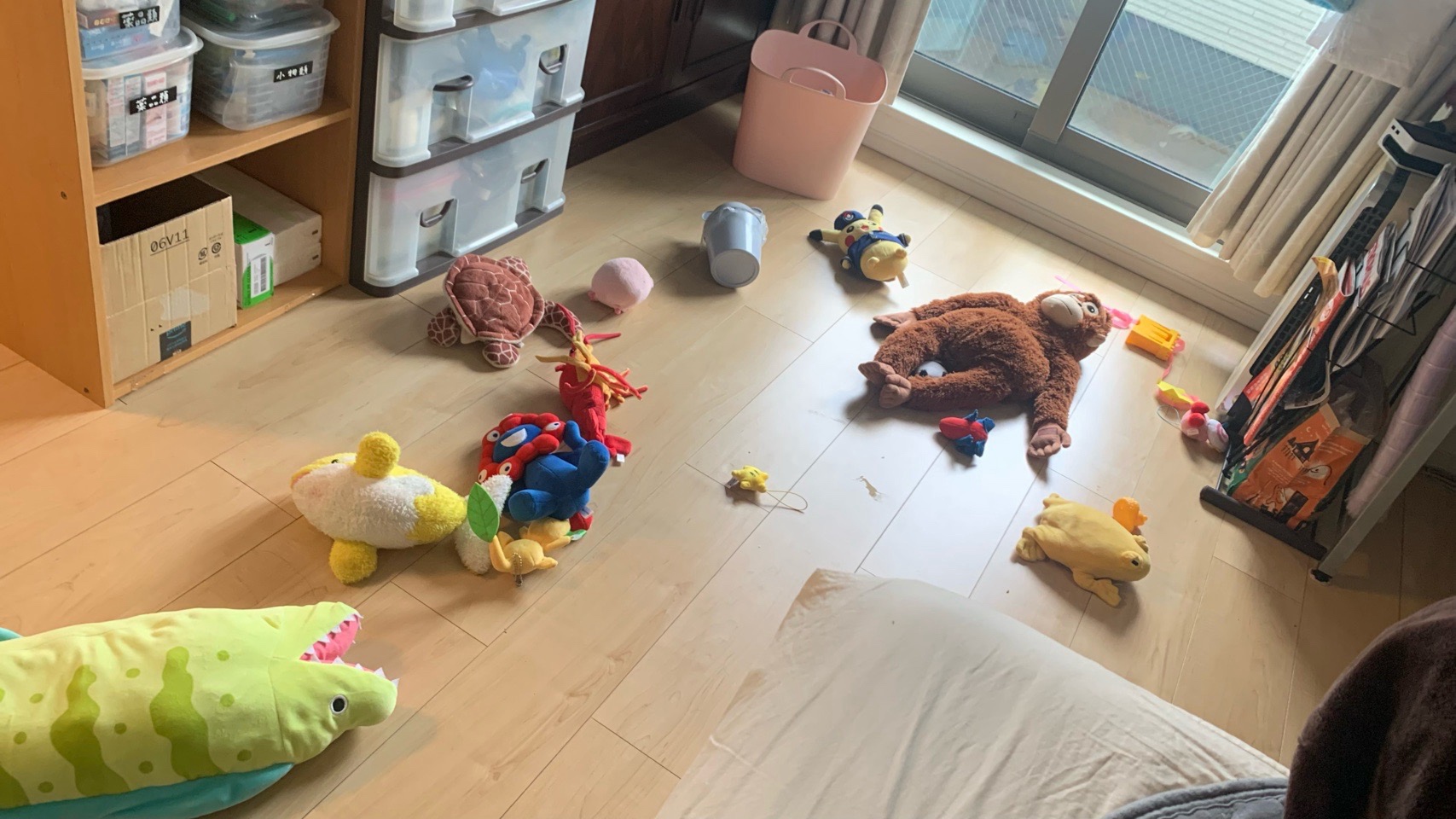 買い物から帰って自分の部屋で休もうとしたら、息子2(4歳)が派手に散らかしている。