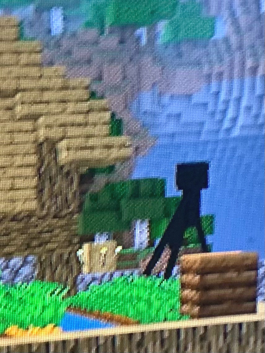 エンダーマンはそのまま村の中へ入り込み、あちこち動き回って、去っていった。